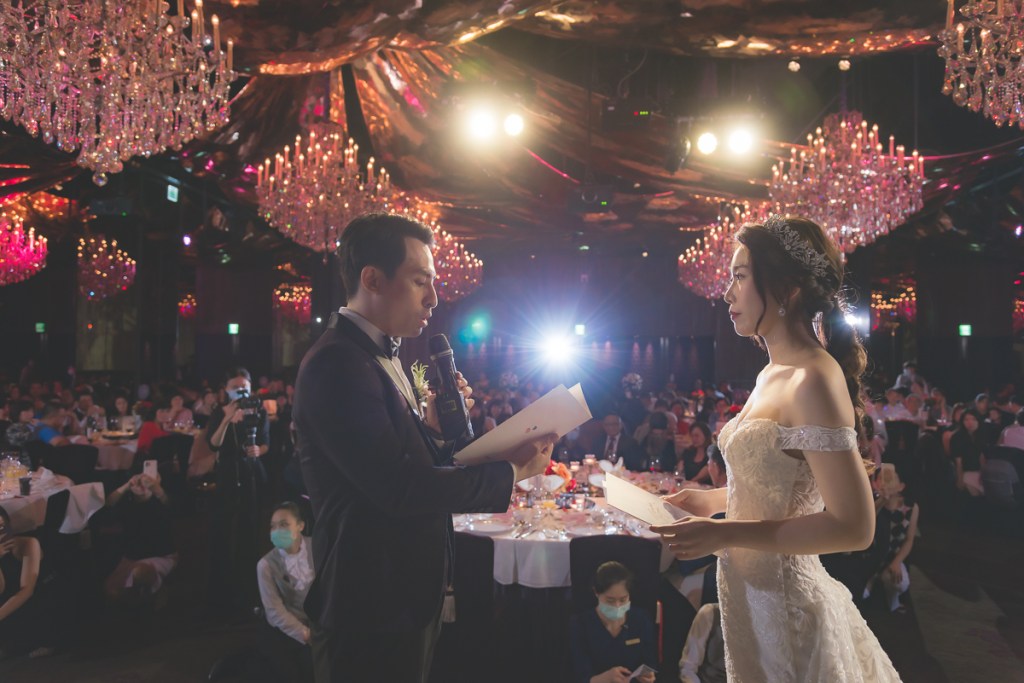 浪漫質感呈現、精準進場燈光、氛圍音樂伴隨著婚宴正式開幕。一對對幸福隊伍熱鬧進場、在大家的掌聲中創造回憶,給讓一切映在眼前夢想中的畫面盡情展露。